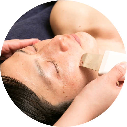 | 超音波 | ハンドマッサージでは行き届かない微細な振動を肌深部に伝えることで血行促進・代謝促進などの効果を促し健康的な肌へ導きます。 |