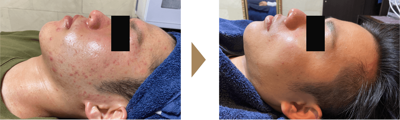 プラズマ照射によってニキビの原因菌の滅菌、肌細胞の活性化、古い角質の除去が一気にできます!プラズマ照射後の浸透力抜群の時に高濃度ヒト幹細胞を入れることで、お肌のお悩みに合った効果を最大限引き出すことができます!その効果は注射と同レベルと言われています!!痛みやダウンタイムは一切ございません!本気の肌質改善ができるこのメニュー、是非おすすめです♪湘南メンズエステ初導入!即効性抜群のフェイスリフト!男性特有の毛穴やニキビのお悩みに最適なフルコース体験!詳しくはサロンにてカウンセリング後の施術となります。